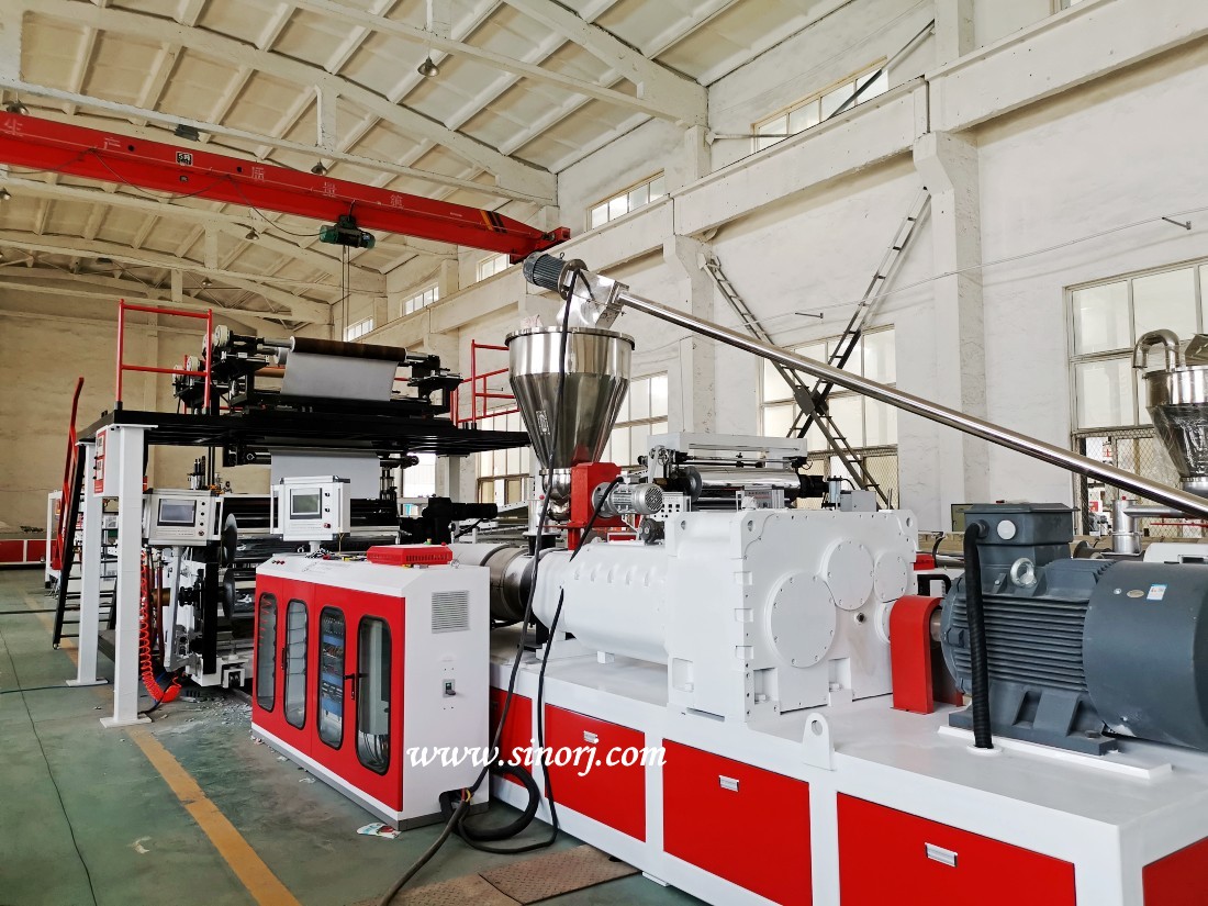 解決了原有PVC地板用密煉機(jī),開煉機(jī),四輥壓延,回火,熱壓貼膜的復(fù)雜加工工藝;占地面積大,用人多,生產(chǎn)成本高,耗能大,設(shè)備購(gòu)買費(fèi)用高的難題。